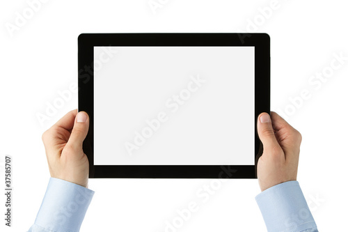 Male hands holding digital tablet with clipping path