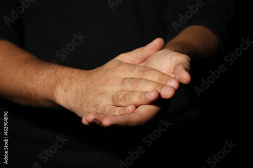 Male hands on a black background