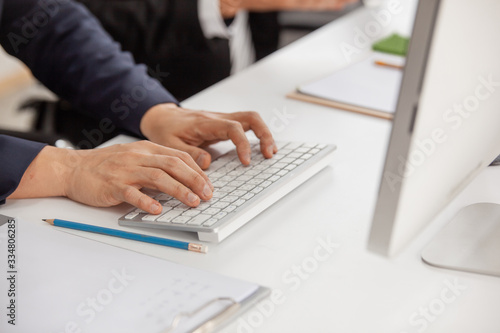 Male hands or men office worker typing on the keyboard. people and technology concept - close up of african american female hands typing on keyboard