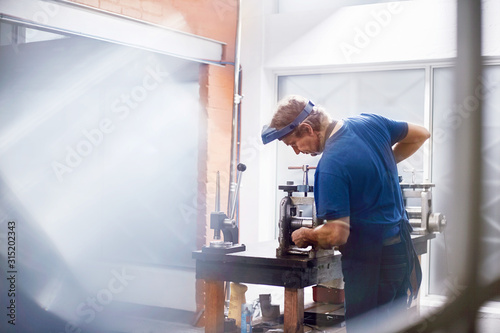 Male jeweler using equipment in jeweler