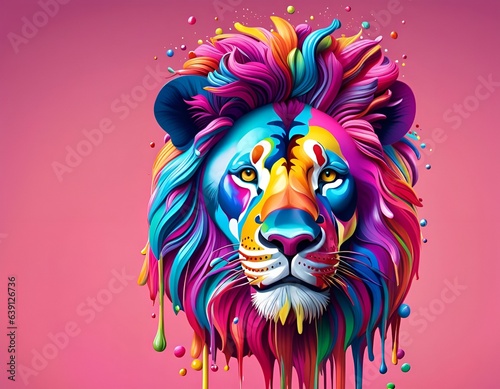 Male Lion Covered With Colorful Paint