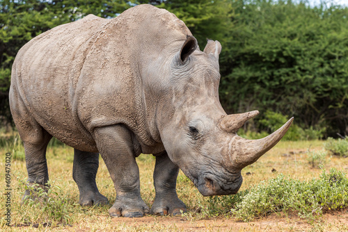 Male Southern African White Rhino in Natural Habitat close portrait Ceratotherium simum