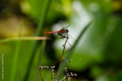 Male Spotted Darter (Sympetrum depressiusculum) dragonfly on tree branch in Zurich, Switzerland