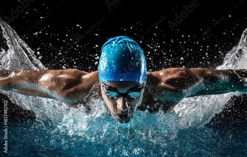 Male Swimmer Diving in Water with Splash and Determination