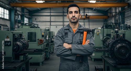 Male Technician in Industrial Workshop with Tools