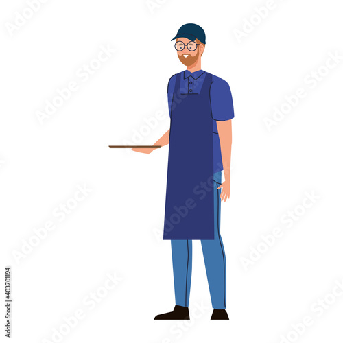 male waiter restaurant service character vector illustration design