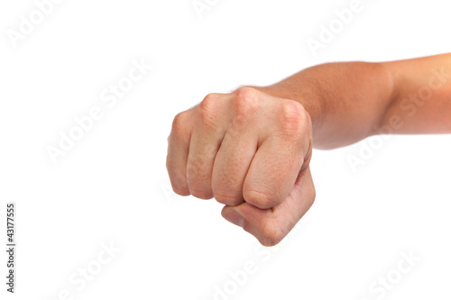 Males hand with a clenched fist isolated