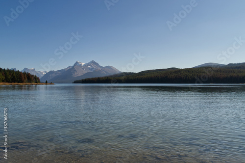 Maligne Lake on a Clear Autumn Day