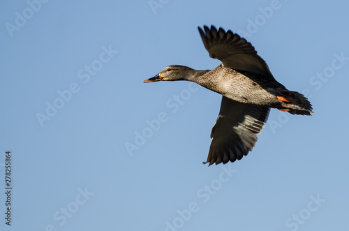 Mallard Duck Flying in a Blue Sky