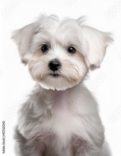 マルチーズの子犬のポートレート(Maltese puppy portrait on white background)