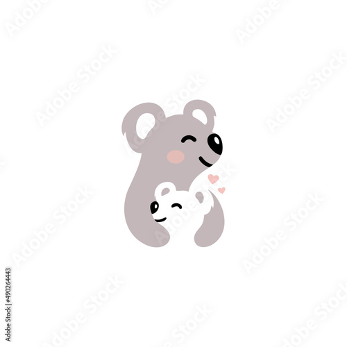 Mama koala character logo hugging little koala with love.