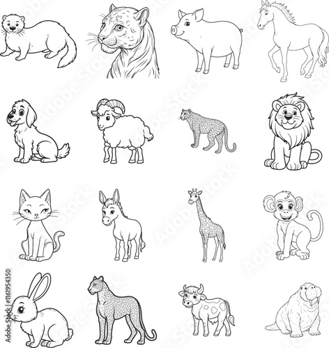 Mammal animals bundle line art on white background