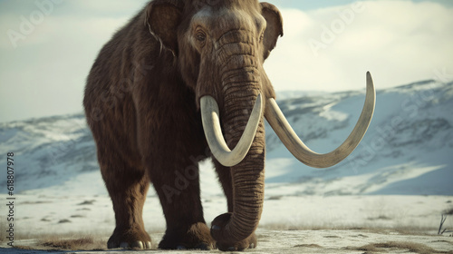 Mammuthus primigenius. Ice Age gigantic mammoth with thick fur.