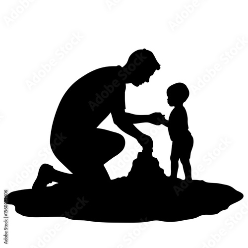 Man and child building a sandcastle together silhouette