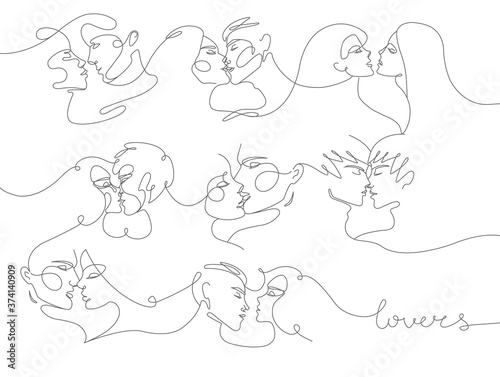 Man and woman, love line art, set.