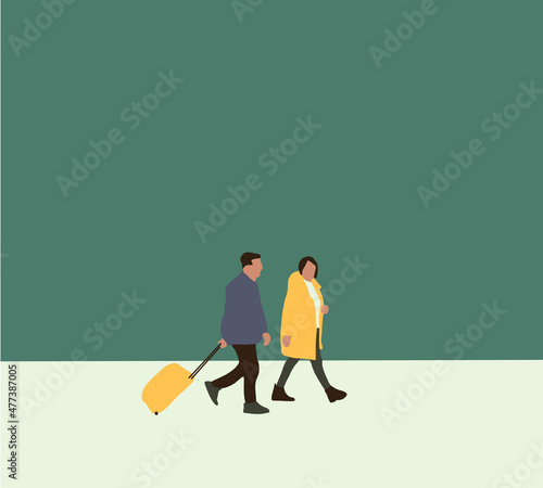 Man and woman with traveling bag. Romantic vacation, summer holidays, honeymoon, world travel. Travelling couple going to go on vacation.