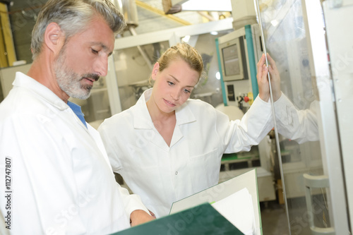 Man and young lady looking in folder