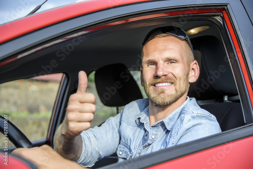 Man at the wheel of his new car