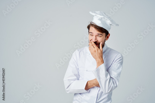 Man Chef uniform Cooking emotions light background