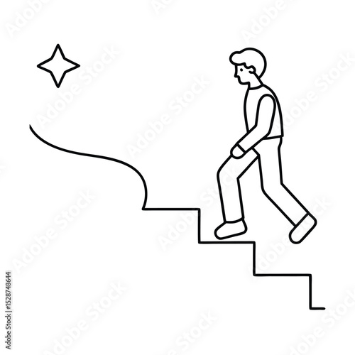 Man climbing stairs towards shining star line drawing illustration