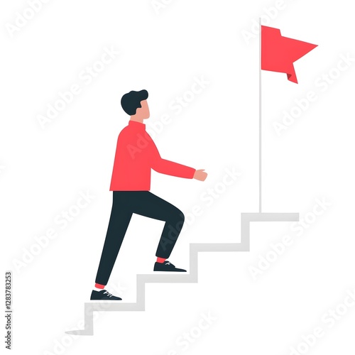 Man Climbing Stairs Towards Success – Business and Goal Achievement Concept