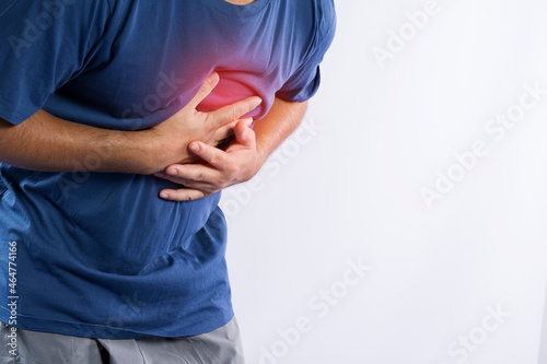 Man clutching his chest from acute pain Heart attack symptoms - health care