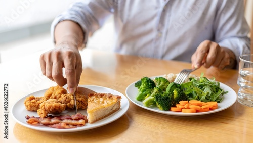 Man Eating Fried Chicken and Vegetables for a Balanced Meal
