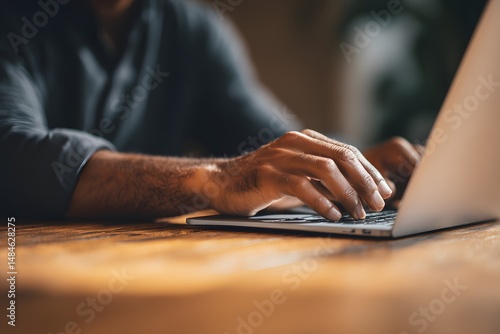 Man Engaged in Data Review and Privacy Settings Adjustment on a Laptop at a Wooden Table