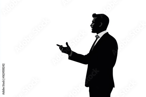 Man giving presentation icon vector illustration isoleted on white background in black silhouette complex photo.