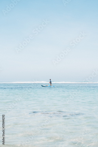 Man going fishing on a small boat in Bali
