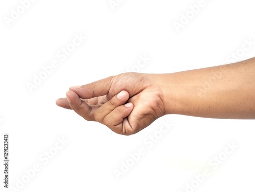 Man hand gestur showing a sign isolated on white background