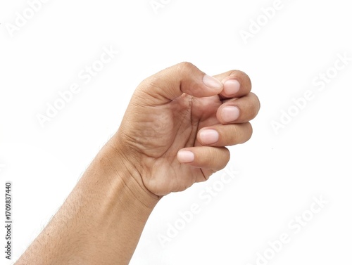 Man hand gesture holding something isolated on white background