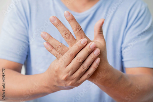 Man hand massage physiotherapy other side is sore and numb,