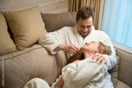 Man hugging his beautiful wife, tenderly stroking her face