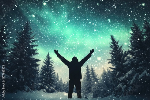 Man in awe of winter wonderland night sky
