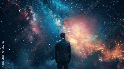 Man in Business Attire Among the Stars