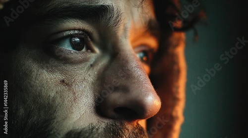 Man in deep thought with a focused gaze, bathed in soft screen glow. A moment of quiet intensity and contemplation.