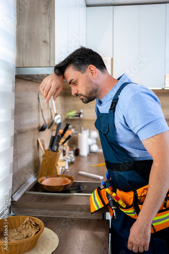 Man in kitchen preparing meal while looking thoughtfully at the ingredients on the counter