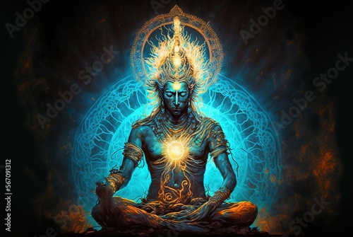 Man in meditation nirvana enlightenment illustration generative ai