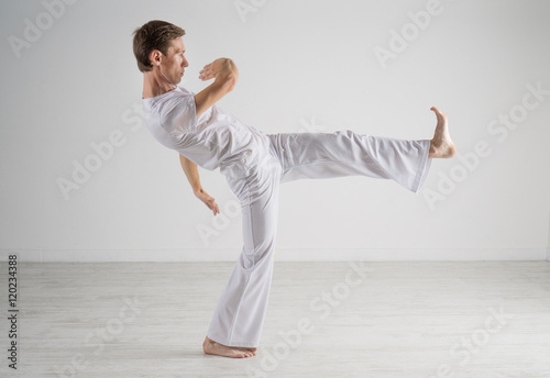 Man in sportswear performing a kick.