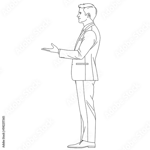 Man in suit gesturing.