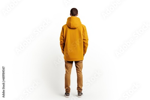 Man In Yellow Hoodie On White Background, Back View, Mockup