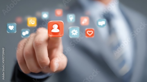Man Interacting with Social Media Concept Modern Communication Dynamism for Digital Campaigns, Boosting Engagement and Influence.