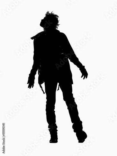 Man is standing in the air with his arms outstretched. He is wearing a jacket and jeans