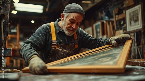 Man Joining a Picture Frame Picture framing production : Generative AI