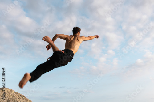 Man jumping up to the sky.