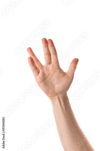 Man keep fingers crossed, hand gesture. Isolated on white background.