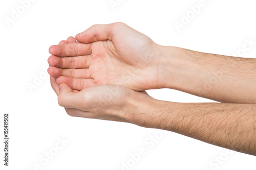 Man keeping hands in cupped shape, cutout