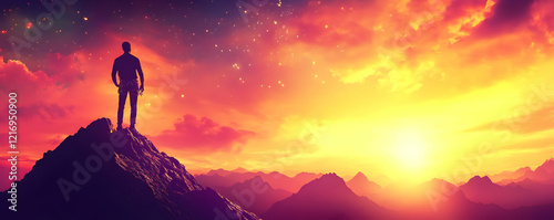 Man Peak Sunset Success Mountaintop