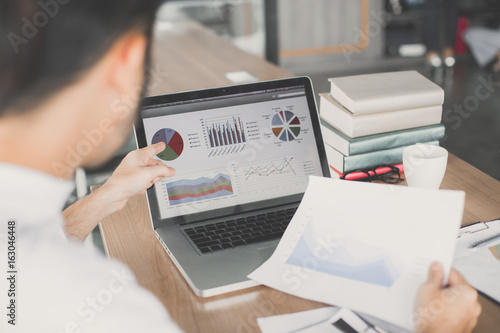 Man presentation business graph at office with team, people presentation concept.
